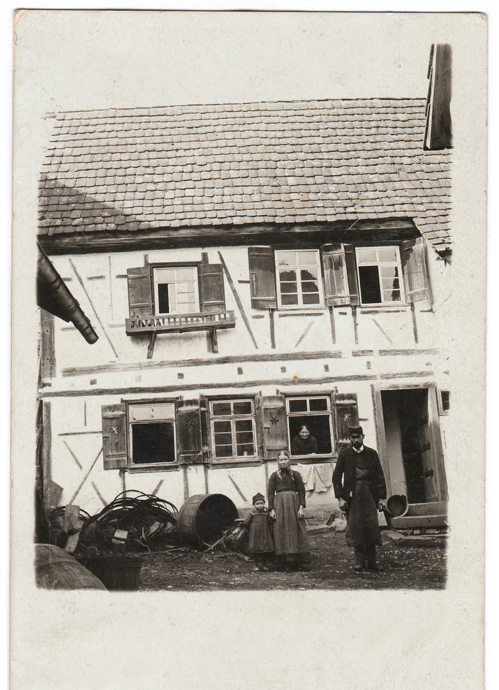 Nähert man sich von der Perouser Straße der Ortsmitte von Malmsheim, so hat man einen eindrucksvollen Anblick vor sich: Die Germanuskirche mit ihrem barocken Turmhelm, davor das Rathaus mit Walmdach und Türmchen und das Backhaus mit seiner Fachwerkfront. Das ganze wird links und rechts der abfallenden Straße gesäumt von einer Reihe alter Gebäude, darunter das in den letzten Jahren sehr schön sanierte Gebäude Perouser Straße 9.