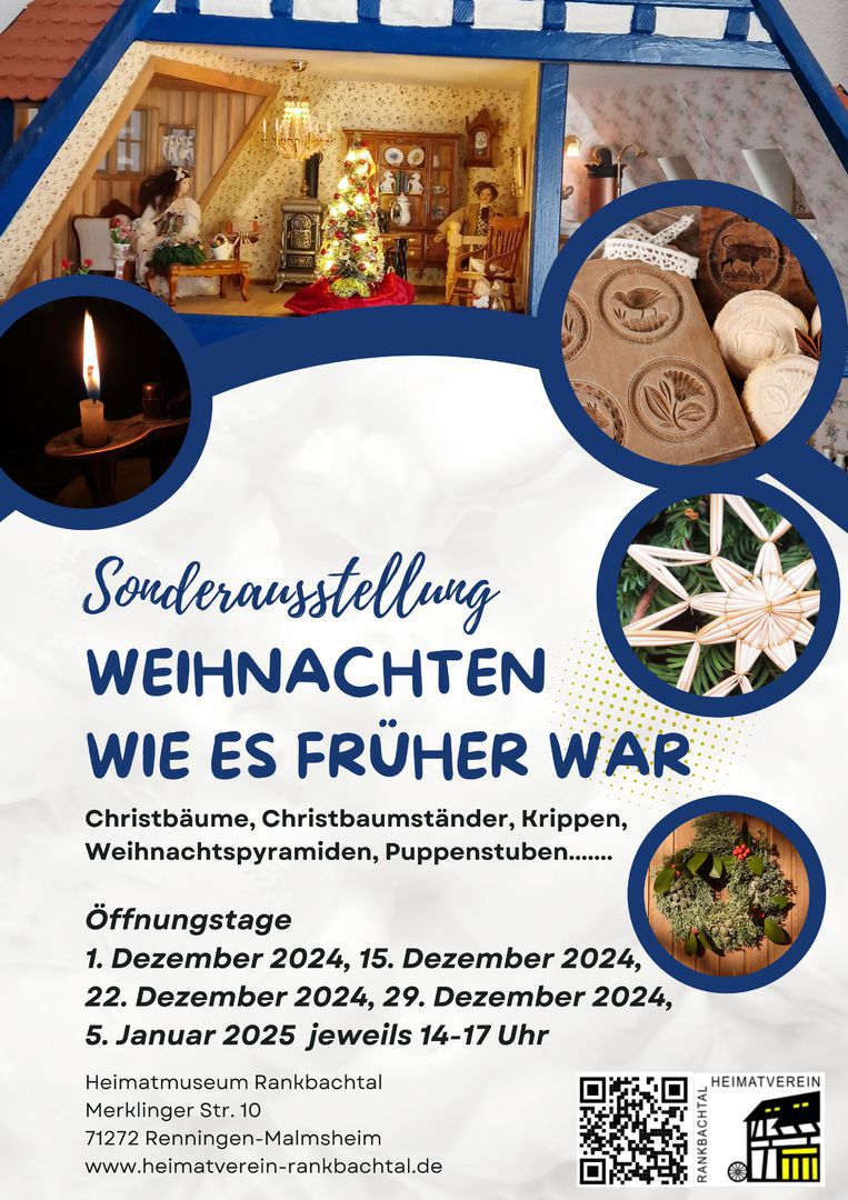 Mit der zusätzlichen Sonderausstellung „Weihnachten wie es früher war“ lädt der Heimatverein Rankbachtal dieses Jahr im Dezember und Januar ins weihnachtlich geschmückte Heimatmuseum Rankbachtal ein.